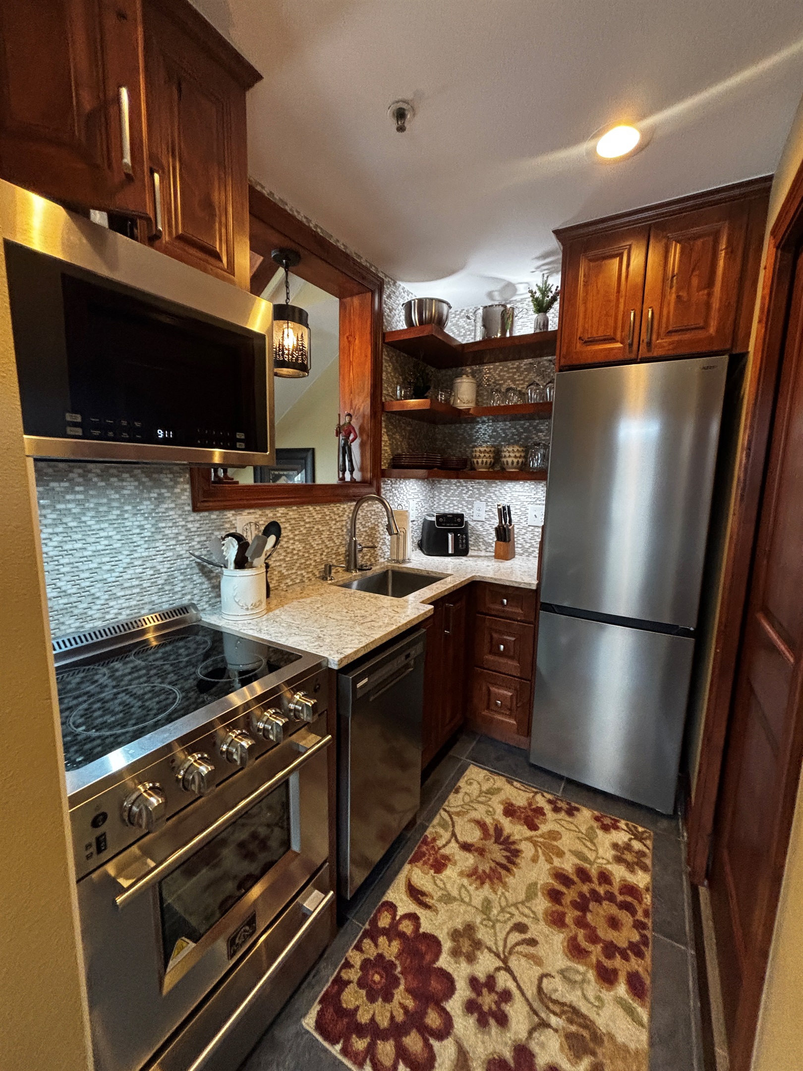 1 Bedroom • 2 Bathrooms (1 full, 1 half) 2 Baths (1 full, 1 half) • Sleeps 4Step into your own mountain retreat at this beautifully remodeled slopeside condo just steps from the lifts. The brand-new professionally remodeled kitchen (completed November 2025) features quartz countertops, knotty alder cabinetry, custom shelving, high-end appliances, elegant lighting, and abundant storage—including a convenient coffee bar.